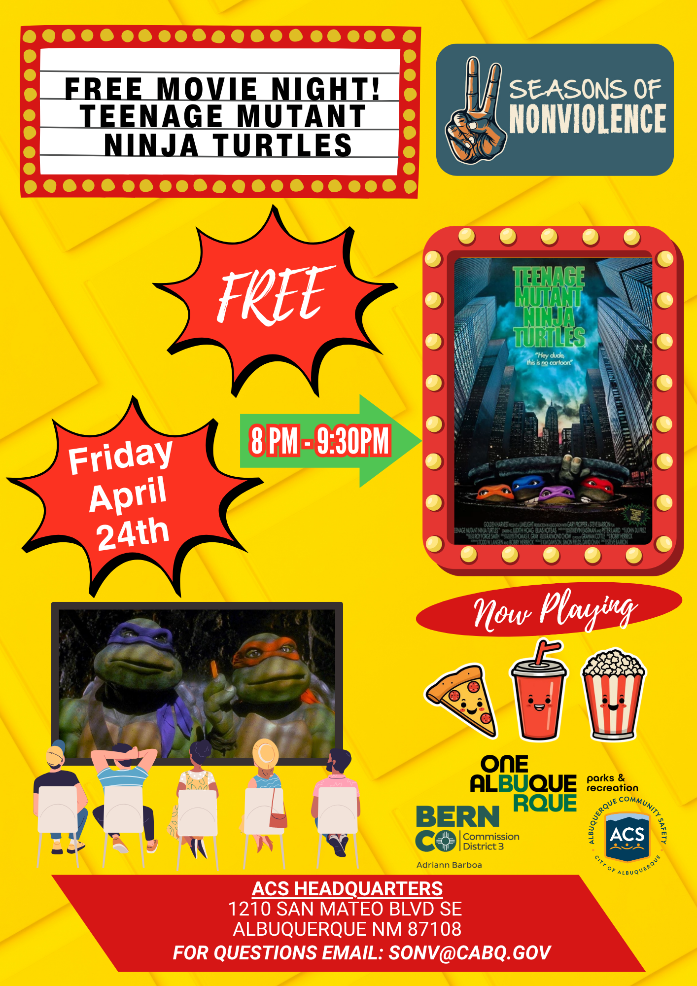 As part of the Seasons of Nonviolence initiative, Commission District 3 and Adriann Barbosa invite the community to a free screening of Teenage Mutant Ninja Turtles.